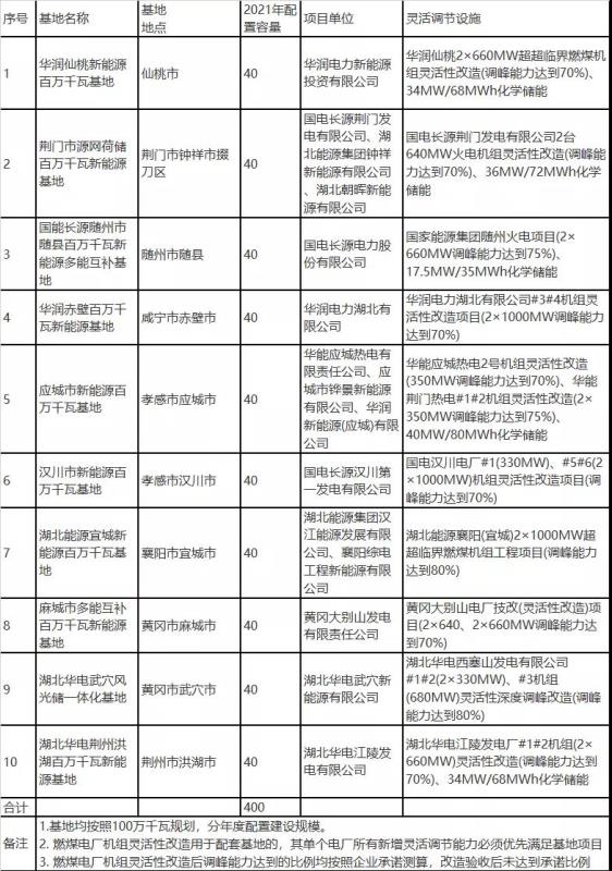 根據(jù)《國(guó)家能源局關(guān)于2021年風(fēng)電、光伏發(fā)電開發(fā)建設(shè)有關(guān)事項(xiàng)的通知》(國(guó)能發(fā)新能〔2021〕25號(hào))、《湖北省能源局關(guān)于2021年平價(jià)新能源項(xiàng)目開發(fā)建設(shè)有關(guān)事項(xiàng)的通知》(鄂能源新能〔2021〕44號(hào))要求,現(xiàn)將2021年新能源百萬千瓦基地、平價(jià)新能源項(xiàng)目、集中式(共享式)化學(xué)儲(chǔ)能電站予以公布。