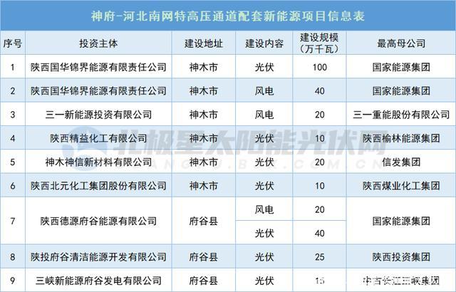 陜西能源局公示神府-河北南網(wǎng)特高壓通道配套新能源項目,其中風(fēng)電3個共80萬千瓦,光伏7個共220萬千瓦。