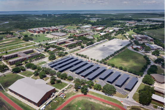 Ameresco公司在美國一個軍事設(shè)施部署可再生能源、儲能系統(tǒng)和能源效率解決方案的鳥瞰圖