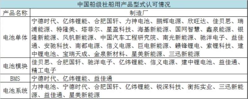 當(dāng)前,包括寧德時(shí)代、億緯鋰能、合肥國(guó)軒、益佳通4家電池企業(yè)的鋰離子電池單體、模組/電池包、電池管理系統(tǒng)(BMS)均獲得了CCS型式認(rèn)可證書,成為國(guó)內(nèi)為數(shù)不多獲CCS全認(rèn)證的電池企業(yè)。