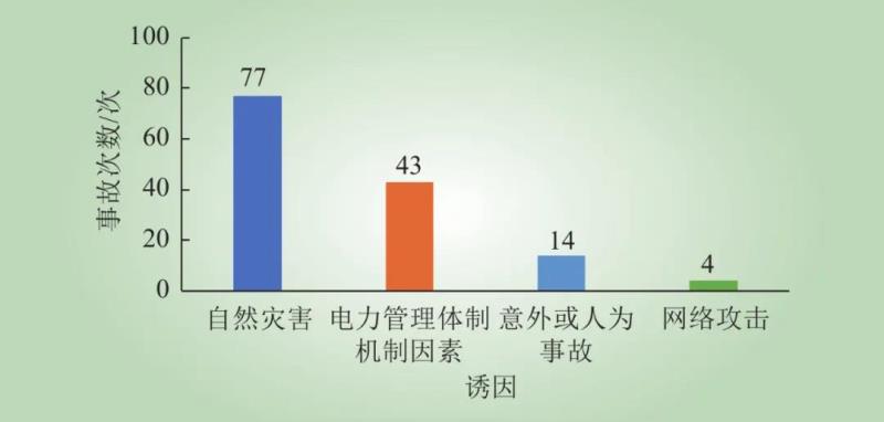 需要注意的是,自然災(zāi)害是引起大規(guī)模停電事故的最重要誘因,但最終的嚴重停電損失往往也是多種因素共同作用的結(jié)果,如防災(zāi)體系失靈、應(yīng)急預(yù)案不充分、關(guān)鍵設(shè)備受災(zāi)停運、調(diào)度手段不恰當(dāng)?shù)?,使得自然?zāi)害引發(fā)的電網(wǎng)局部故障惡化為系統(tǒng)性連鎖故障。