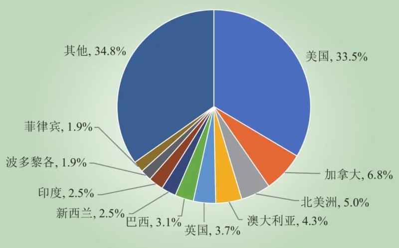 圖2 各國及地區(qū)大停電發(fā)生次數(shù)占比