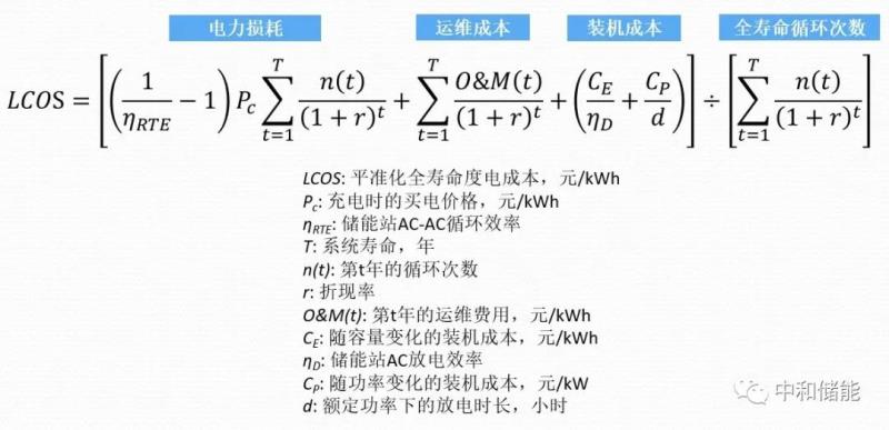 因此,為了找到更科學(xué)的度電成本計算方法,以幫助市場對不同的儲能技術(shù)進(jìn)行比較,我們查閱分析了不少文獻(xiàn)資料。在找到的眾多計算方法中,美國能源部在招標(biāo)儲能技術(shù)項目時推出的一個平準(zhǔn)化全壽命度電成本公式是一個考慮得比較全面的方法,于是我們借用這個公式來進(jìn)行度電成本的計算,以幫助大家能更好地考察不同技術(shù)的各種隱藏成本。