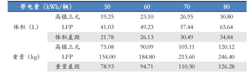 隨著政策的不斷升級,使得能量密度更高的三元電池成為新寵,尤其是很多高端電動車上,使用的幾乎都是三元電池。同樣帶電量情況下,三元電池的體積、重量都要遠(yuǎn)遠(yuǎn)高于LFP電池。