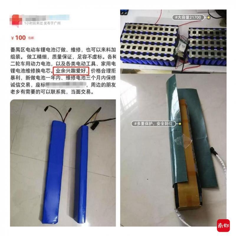 在某二手交易平臺,記者搜索“外賣電池”,光定位廣州地區(qū)就可見大量手工組裝電池的銷售信息。有商家為證明電池的“純手工”特色,展示出多張條件簡陋的電池焊接作坊照片,并留言表示“可定做、維修鋰電池”“也可來料加工”。該商家還強(qiáng)調(diào),做電池只是自己的“業(yè)余興趣愛好”。這樣一條“三無電池”的銷售信息,記者發(fā)現(xiàn)卻有不少網(wǎng)友留言咨詢電池訂購事宜。