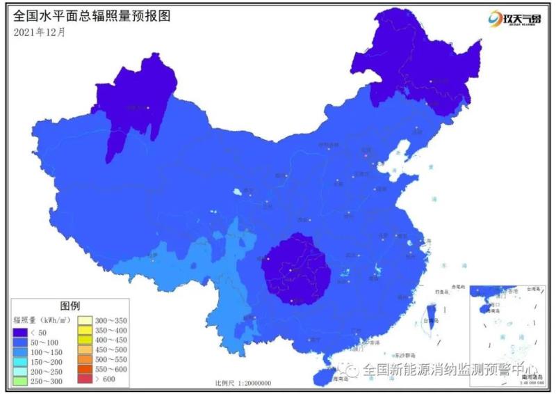 附圖6 全國(guó)2021年12月水平面總輻照量預(yù)報(bào)圖