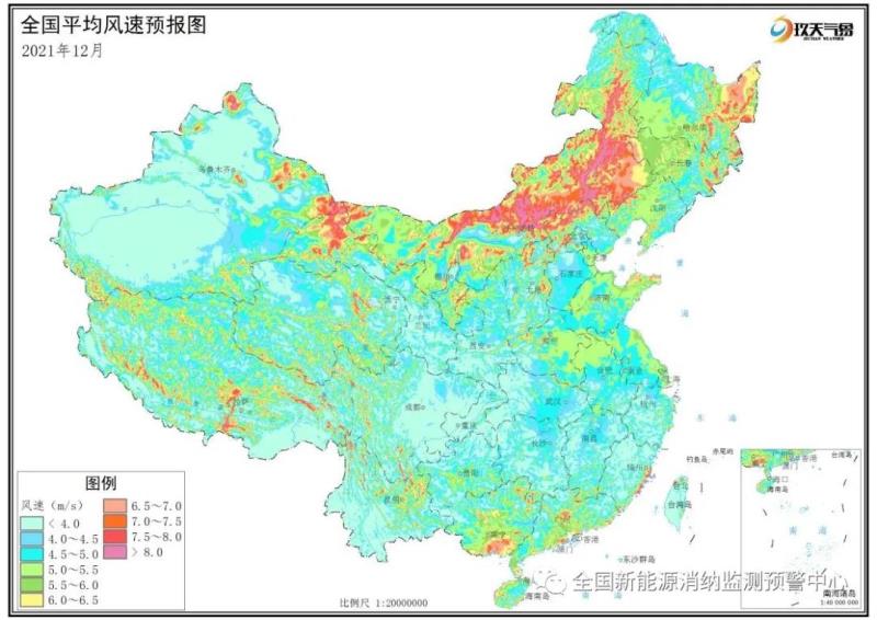 附圖5 全國(guó)2021年12月平均風(fēng)速分布預(yù)報(bào)圖