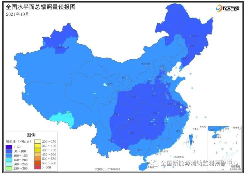 附圖2 全國(guó)2021年10月水平面總輻照量預(yù)報(bào)圖