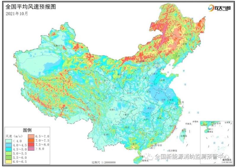 附圖1 全國(guó)2021年10月平均風(fēng)速分布預(yù)報(bào)圖