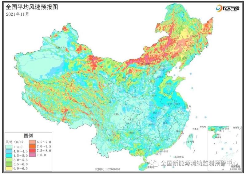 附圖3 全國(guó)2021年11月平均風(fēng)速分布預(yù)報(bào)圖