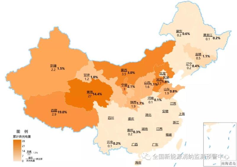 截至9月底各地區(qū)累計(jì)棄光電量(億千瓦時(shí))及棄光率