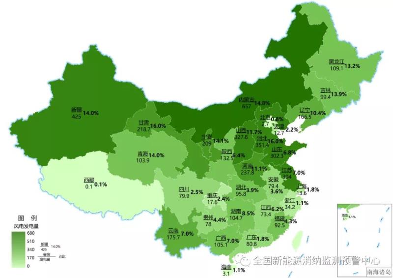截至9月底各地區(qū)累計(jì)風(fēng)電發(fā)電量(億千瓦時(shí))及占本地區(qū)總發(fā)電量比重