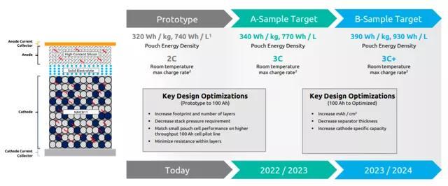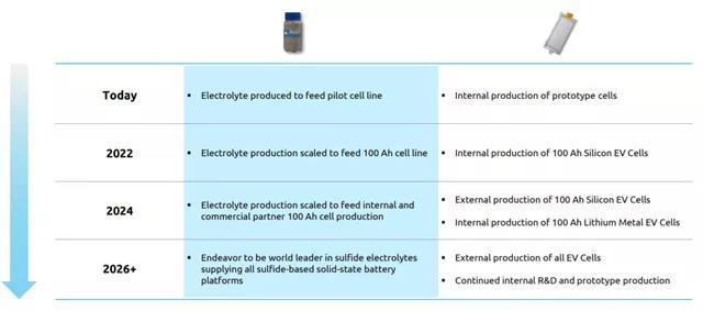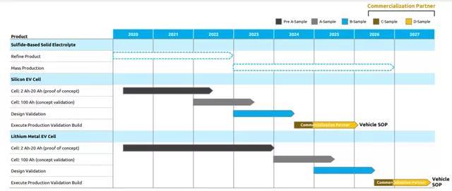 目前Solid Power的產(chǎn)品,從2Ah到20Ah,在10月的分析師會議里面還加入了2022年100Ah的計劃。如果真的完成這個計劃的話,這顆電池可以在2022年做出一些樣品來,這些小批量可以給兩家車企進行實驗室測試,甚至可以裝幾臺車裝車測試了。