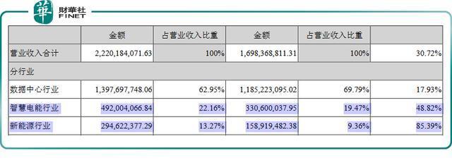 2021年上半年,儲能業(yè)務(wù)在公司的營收占比為13.27%,2020年這一占比為10.71%,說明在逐步釋放,盡管數(shù)據(jù)中心業(yè)務(wù)最高占比62.95%,其次是智慧電能占比22.16%,如下表所示: