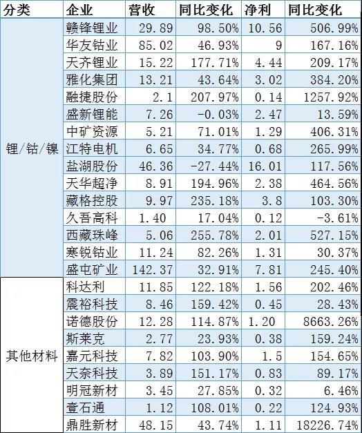 除此之外,其他材料業(yè)績(jī)雖不及上述兩類波動(dòng)明顯,但獲益下游需求景氣,整體也處于不同程度的增長(zhǎng)態(tài)勢(shì),如結(jié)構(gòu)件龍頭科達(dá)利Q3凈利潤(rùn)增長(zhǎng)超2倍,華友鈷業(yè)漲幅也近1.7倍等。