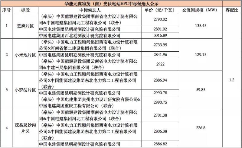 根據(jù)招標(biāo)公告,投標(biāo)企業(yè)報價包含的設(shè)備采購為片區(qū)內(nèi)光伏組件、逆變器、支架、箱變、電纜等(含從箱變接入到35kV集電線路的部分)所有設(shè)備及配套設(shè)備。但組件、逆變器、箱變、電纜設(shè)備按照暫估價進(jìn)行報價,最終以中國華能集團(tuán)公司集采框架結(jié)果為準(zhǔn),由招標(biāo)人、EPC總承包方與供貨方共同簽訂設(shè)備采購合同后,招標(biāo)人委托EPC總承包方負(fù)責(zé)設(shè)備采購合同全過程管理。合同費用由EPC總承包方支付給供貨方。