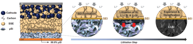 在研究最開始,孟穎教授等人想到要把微米級(jí)Si(μSi)作為陽極應(yīng)用于鋰離子電池中,需要找到不同于以往的方法。既然Si陽極與液態(tài)電解質(zhì)之間存在難以克服的材料穩(wěn)定性問題,那不如直接使用固態(tài)電解質(zhì)。