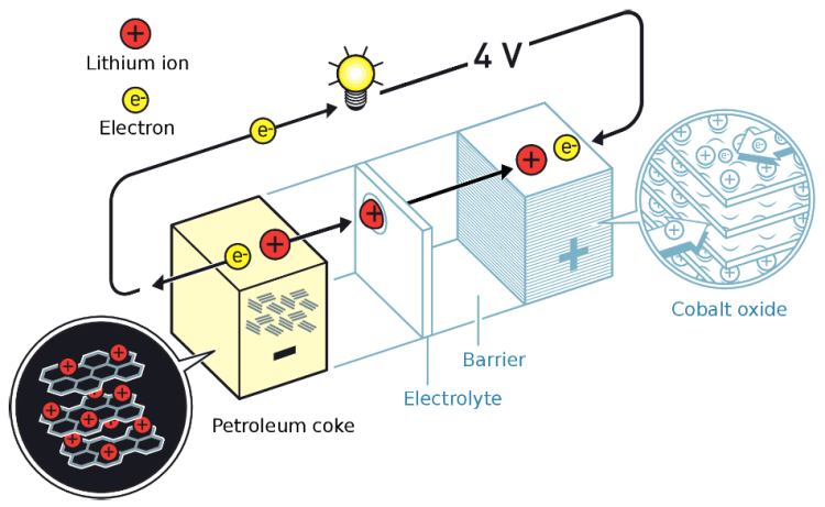 自1980年起,就以古迪納夫發(fā)現(xiàn)的鈷酸鋰為基礎(chǔ),通過替換鈷元素,或摻雜鎳、鋁、鎂、錳、鐵等金屬元素,演變出了多種鋰離子電池的陰極材料。在20世紀(jì)80年代,作為鋰離子電池陽極的材料也被報(bào)道出來——1983年,Richard Yazami博士證明了具有層狀結(jié)構(gòu)的石墨能夠可逆地嵌入、脫嵌Li+。在鋰離子電池中,放電時(shí),Li+會(huì)從石墨陽極脫嵌,穿過電解質(zhì)嵌入鈷酸鋰中,而充電時(shí),Li+會(huì)從鈷酸鋰陰極中脫嵌,穿過電解質(zhì)后再嵌入作為陽極的石墨層間。這種電池也被形象地稱為“搖椅電池”(rocking chair battery)。