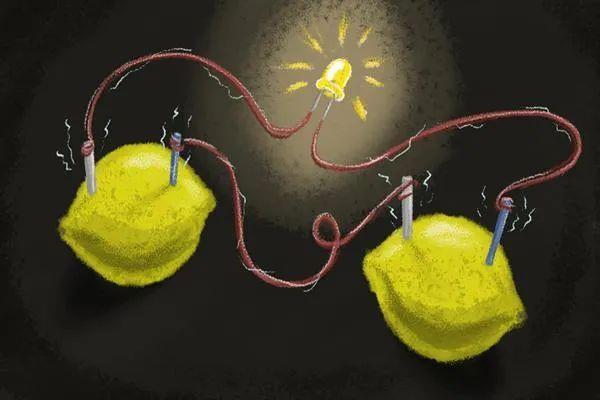 早在1800年,歷史上第一個(gè)電池就被亞歷山德羅·伏特(Alessandro Volta)發(fā)明了出來。它由幾組電池串聯(lián)而成,可以形象地看作是電池組的堆疊,而被稱為“伏打電堆”。這項(xiàng)發(fā)明奠定了電池結(jié)構(gòu)的基礎(chǔ)——兩個(gè)電極、電解質(zhì),再加上連接兩個(gè)電極的外電路。而我們熟悉的一個(gè)化學(xué)實(shí)驗(yàn)——水果電池,就是模擬了最原始的伏打電堆:將鋅片和銅片當(dāng)作兩個(gè)電極插入一個(gè)檸檬中,以檸檬中的酸為電解質(zhì),外加連接小燈的導(dǎo)線,我們就能看到燈變亮,對(duì)應(yīng)著水果電池的放電。