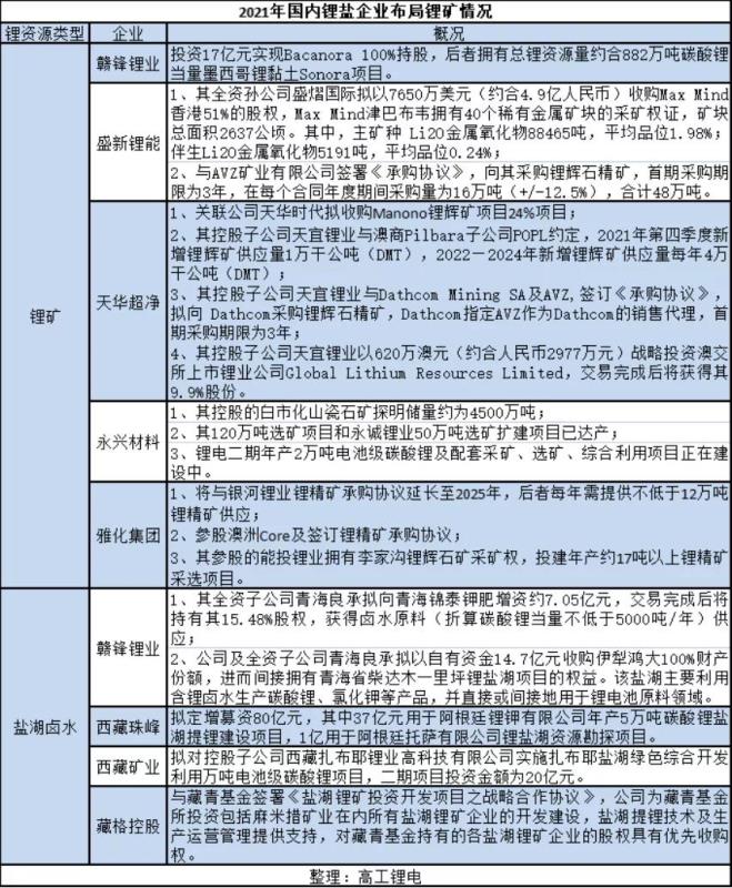 同時,可以預見,在未來,將有越來越多的企業(yè)意識到上游原材料保障的重要性和迫切性,會有更多的企業(yè)參與到鋰資源的卡位戰(zhàn)中。