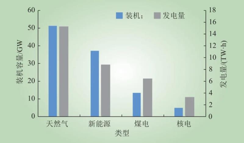 圖4 美國(guó)得州2020年底電源裝機(jī)容量及2020年11月發(fā)電量