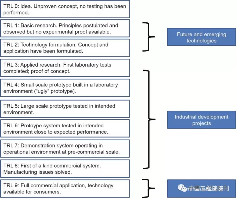圖6 技術(shù)就緒水平(TRL)(改編自參考文獻)