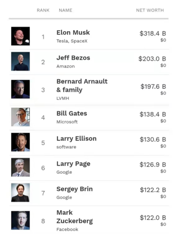 根據(jù)福布斯富豪實時榜的數(shù)據(jù),截至11月8日下午,馬斯克的個人身家高達3180億美元,位列榜首;排在榜單第二位的,是亞馬遜創(chuàng)始人貝佐斯,他的身家為2030億美元。