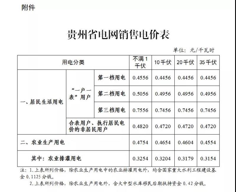取消我省電網(wǎng)銷售電價表中的“工商業(yè)及其他”用電類別,僅保留居民、農業(yè)目錄銷售電價。(調整后的貴州省電網(wǎng)銷售電價表見附件)
