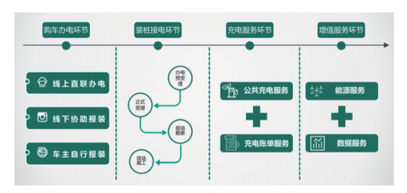 與4S店合作,由車服經(jīng)理協(xié)作辦電,實現(xiàn)辦電前置;與物業(yè)、建樁服務商合作,實現(xiàn)辦電主動服務