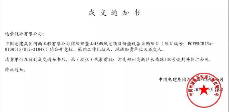 中國儲能網(wǎng)訊:近日,遠(yuǎn)景能源中標(biāo)中國電建集團河南工程有限公司河南信陽市查山風(fēng)電配套儲能項目。