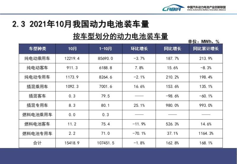 中國儲能網(wǎng)訊:2021年11月10日,中國汽車工業(yè)協(xié)會11月數(shù)據(jù)發(fā)布會在京召開,中國汽車動力電池產(chǎn)業(yè)創(chuàng)新聯(lián)盟發(fā)布2021年10月份動力電池月度數(shù)據(jù)。
