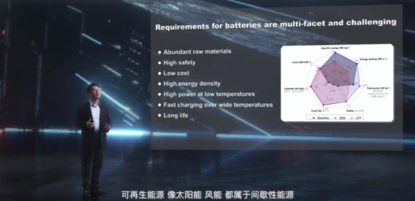 電池儲能的應(yīng)用之大影響之深,也決定了它面臨多維度的巨大挑戰(zhàn),它需要非常豐富大量的成本低廉的原材料,要有極高的安全性,能夠保障人們的生命和財產(chǎn)安全,還要高能量密度高功率可快充長壽命,還有無論炎熱地帶和寒冷地區(qū),電池必須在全溫域都保持良好的性能壽命和安全性。