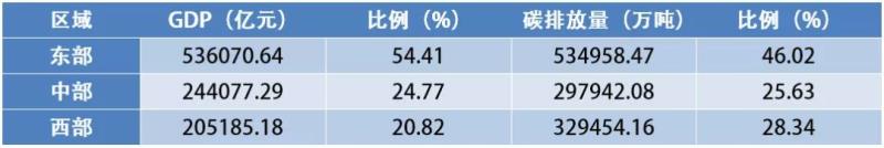 表1 2019年東、中、西部地區(qū)經(jīng)濟(jì)總量和碳排放總量及占比