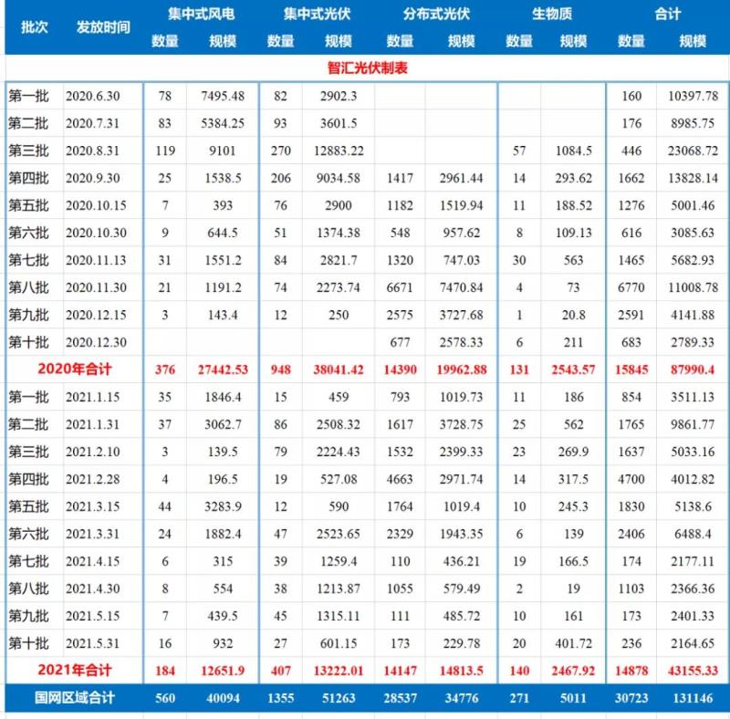除了進入財政部前七批的補貼目錄之外,2020年6月份以來,國家電網(wǎng)每半個月就會公布一批新確權的項目。