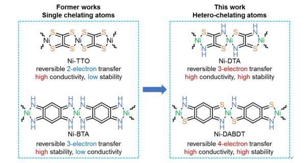 為實(shí)現(xiàn)“碳中和”和“碳達(dá)峰”的雙碳戰(zhàn)略,儲能器件的需求日益增加,傳統(tǒng)鋰電池已不足以滿足多樣化和大規(guī)模的儲能需求。面向各種新型電池,有機(jī)高分子功能材料具有得天獨(dú)厚的優(yōu)勢。但傳統(tǒng)的有機(jī)高分子材料的導(dǎo)電性通常較差,不利于獲得高性能儲能器件。而共軛配位聚合物材料因具有良好的導(dǎo)電性使其在諸多領(lǐng)域(半導(dǎo)體、超導(dǎo)體、存儲、氣體吸附、傳感等)中具有潛在的應(yīng)用前景,近幾年得到了大量關(guān)注。但該類材料的結(jié)構(gòu)和化學(xué)態(tài)還存在著各種爭議,其材料的復(fù)雜性造成到目前為止,大部分的研究仍集中于單類原子的配位上。