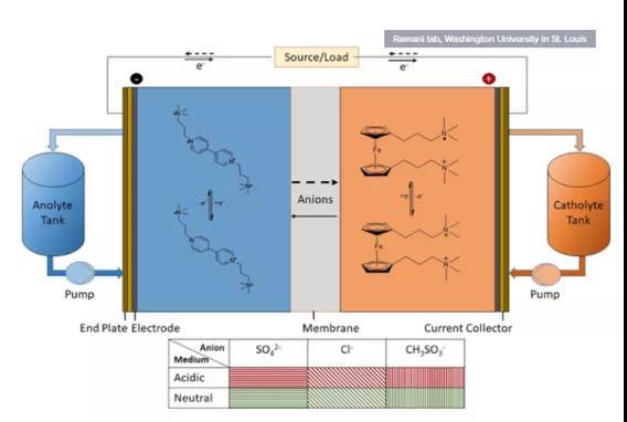 氧化還原液流電池系統(tǒng)的設(shè)計成本通常比鋰離子電池低,因?yàn)樗鼈兪褂昧畠r的有機(jī)材料作為電池的陰極和陽極。