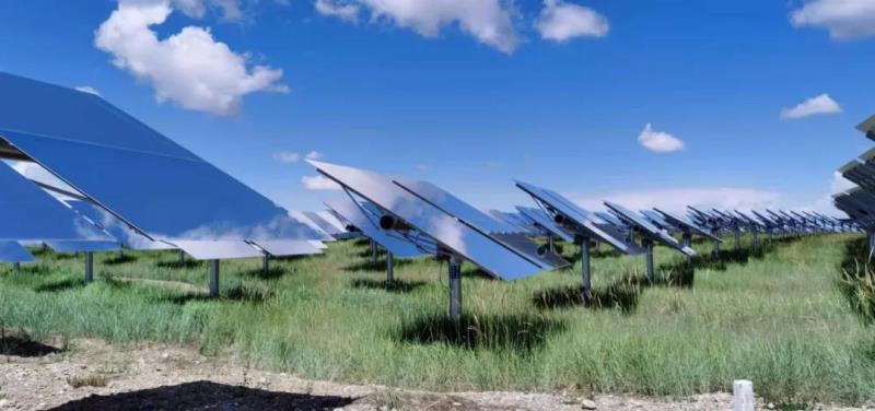 通過大量反射鏡以聚焦的方式將太陽直射光聚集起來,加熱工質(zhì)并進(jìn)行儲存,再利用高溫工質(zhì)產(chǎn)生高溫高壓的蒸汽,驅(qū)動汽輪發(fā)電機(jī)組發(fā)電。