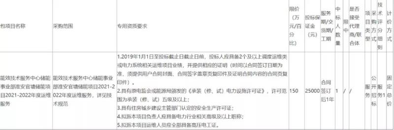 淮安官塘儲能項目2021-2022年度運維服務招標公告
