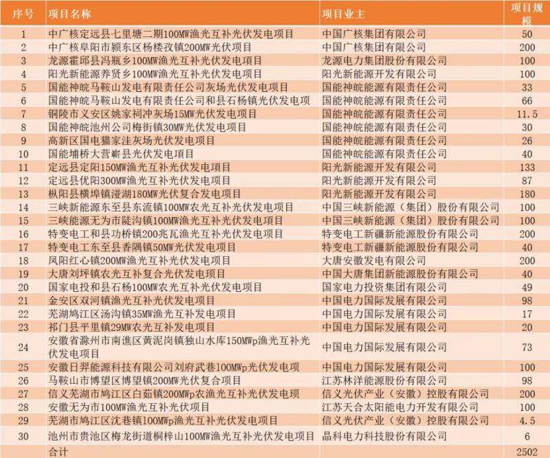 中國儲(chǔ)能網(wǎng)訊:11月19日,安徽省能源局下發(fā)了《安徽省2021年光伏發(fā)電項(xiàng)目競(jìng)爭(zhēng)性配置(第二批次)中選公告》和《安徽省2021年風(fēng)電項(xiàng)目競(jìng)爭(zhēng)性配置(第二批次)中選公告》,其中,光伏30個(gè)項(xiàng)目總規(guī)模為2502MW;風(fēng)電6個(gè)項(xiàng)目總規(guī)模為1166MW。