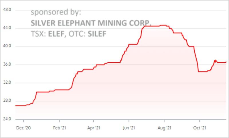 目前釩液流電池成本達(dá)3-3.2元/Wh,是鋰電池的2-3倍,鉛酸電池的3-5倍。釩電解液成本約占總成本的41%,其中主要成本用在五氧化二釩,而過去一年釩價經(jīng)歷了較為明顯的上漲。