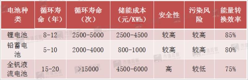相比于鈉硫電池和鋰離子電池,釩液流電池容量更大、更安全環(huán)保、循環(huán)壽命更長、能量轉(zhuǎn)換效率高,早在十幾年前就它被認(rèn)為是儲能中的“希望之星”,是未來儲能技術(shù)的首選技術(shù)。