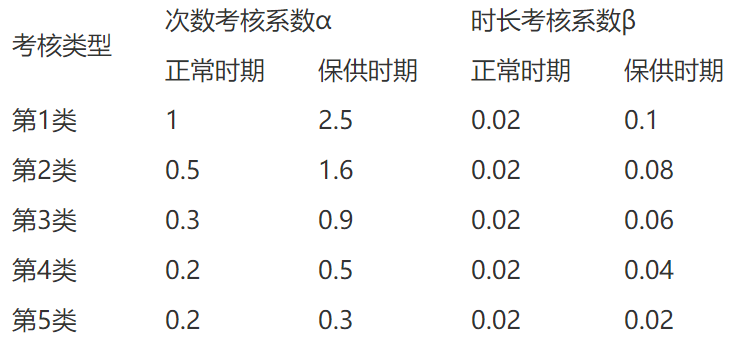 電力調(diào)度機(jī)構(gòu)對并網(wǎng)發(fā)電廠非計劃停運(yùn)次數(shù)、非計劃停運(yùn)時間進(jìn)行統(tǒng)計和考核,考核按照正常運(yùn)行時期和重點(diǎn)保供時期(每年的1、7、8、12月及重要保電時期)分別進(jìn)行考核。