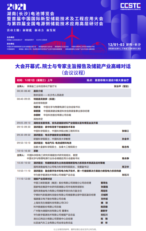 中國儲能網(wǎng)訊:為進(jìn)一步促進(jìn)新型儲能科技與技術(shù)交流、推動(dòng)儲能基礎(chǔ)研究與應(yīng)用對接、提升儲能應(yīng)用工程創(chuàng)新能力,實(shí)現(xiàn)源、網(wǎng)、荷、儲的深度協(xié)同發(fā)展,由湖南省商務(wù)廳、湖南省工信廳、長沙市人民政府、中國化學(xué)與物理電源行業(yè)協(xié)會儲能應(yīng)用分會、湖南省電池行業(yè)協(xié)會等單位聯(lián)合主辦,并邀請200余家單位共同支持的“湖南(長沙)電池博覽會暨首屆中國國際新型儲能技術(shù)及工程應(yīng)用大會與第四屆全國電源側(cè)儲能技術(shù)應(yīng)用高層研討會將于于2021年12月1—3日在湖南省長沙市圣爵菲斯大酒店召開。