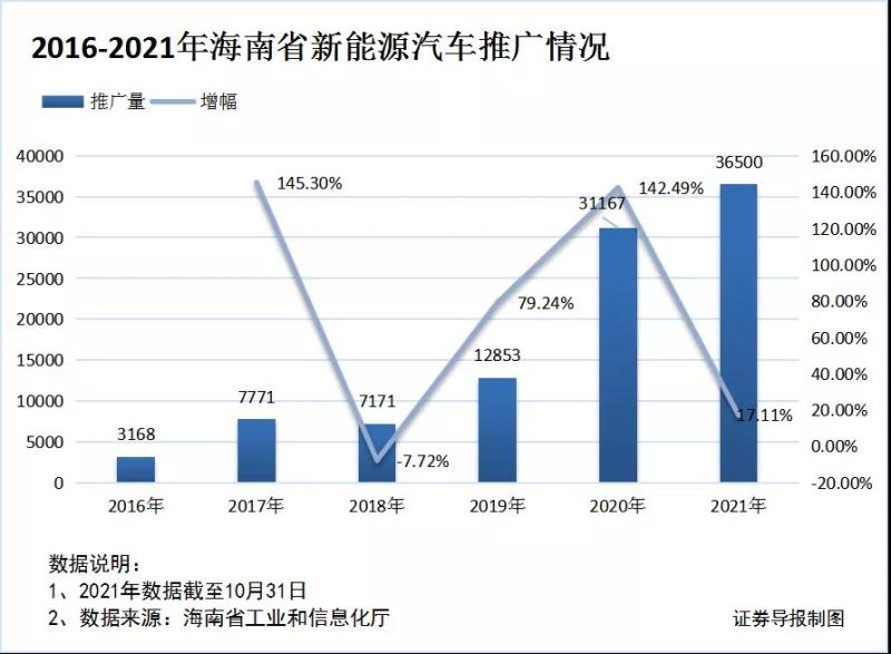 隨著海南省持續(xù)加大新能源汽車推廣力度,全省新能源汽車應(yīng)用市場穩(wěn)步提速。證券導(dǎo)報記者從海南省工業(yè)和信息化廳獲悉,截至10月底,海南全省新能源汽車保有量為10.13萬輛,占汽車保有量6.11%,較2020年底數(shù)據(jù)提升約1.8個百分點,高出全國平均水平(2.28%)1.7倍。今年我省已推廣新能源汽車3.65萬輛,較上年提升約17.11%。快速增長的新能源汽車市場為發(fā)展換電模式提供了廣闊的市場空間。