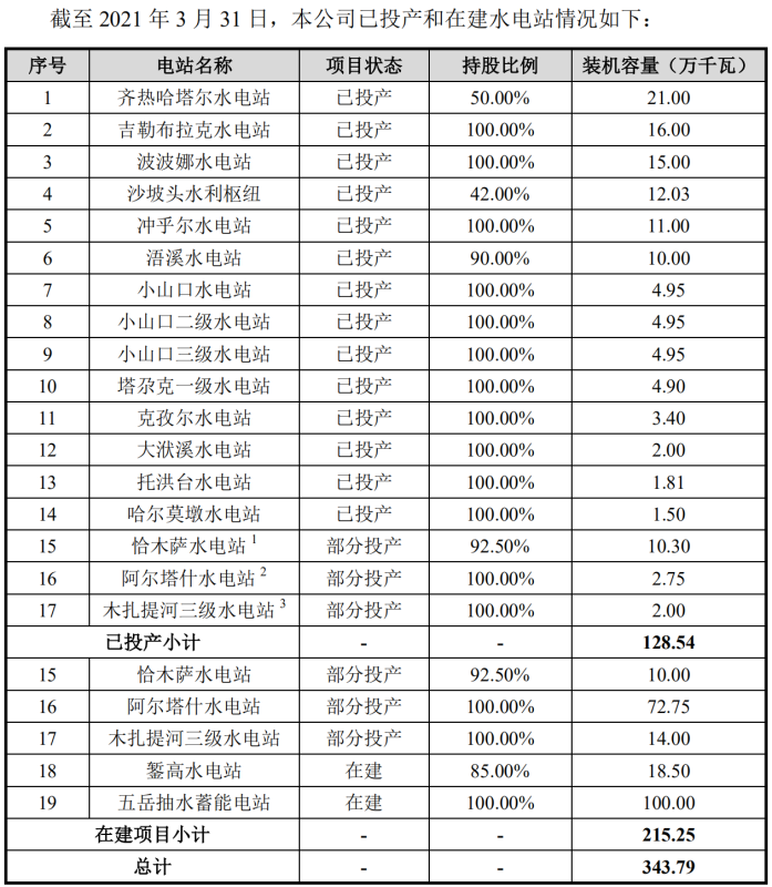 中國儲能網(wǎng)訊:◎根據(jù)新華水電招股書(申報稿)披露,公司的主要業(yè)務為水力發(fā)電,分布于新疆喀什、和田、阿克蘇、巴州、阿勒泰等地州及寧夏、湖南、河南等新疆以外區(qū)域。截至今年3月31日,新華水電已投運總裝機規(guī)模128.54萬千瓦,在建裝機215.25萬千瓦,是新疆第二大水電運營商。