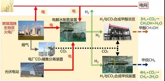二是通過(guò)二氧化碳直接與氫氣合成,生產(chǎn)甲烷、甲醇等便于存儲(chǔ)、運(yùn)輸?shù)木G色燃料或作為重要化工原料產(chǎn)品,一方面可規(guī)避大規(guī)模二氧化碳捕集后壓縮及封存的高額成本投入,另一方面形成合理可行的產(chǎn)品收益模式,有利于火電企業(yè)推廣應(yīng)用二氧化碳捕集與利用技術(shù);在促進(jìn)火電行業(yè)碳減排及轉(zhuǎn)型發(fā)展的同時(shí),所生產(chǎn)的氫氣本身及與二氧化碳、氮?dú)夂铣缮傻木G色燃料化工原料產(chǎn)品,也可為能源相關(guān)領(lǐng)域化石燃料和原料替代提供一定的來(lái)源補(bǔ)充。