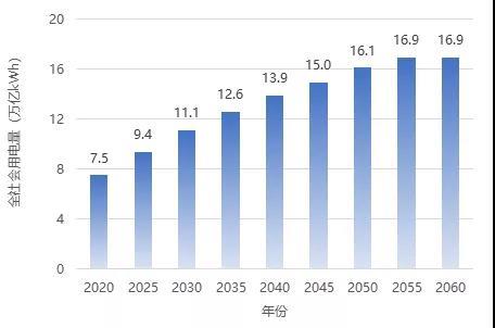 圖2 2020-2060年我國(guó)全社會(huì)用電總量變化趨勢(shì)