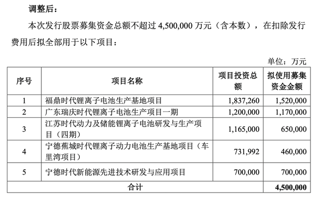 然而,“不差錢”的寧德時代卻在8月預(yù)告將定增582億元,相當(dāng)于其近10年的凈利潤總額,創(chuàng)A股民營企業(yè)募資記錄,引發(fā)諸多質(zhì)疑。11月15日晚,寧德時代發(fā)布公告,稱將募資總額下調(diào)至450億元。