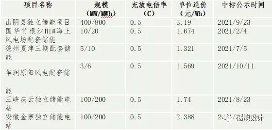 2021年部分已中標(biāo)項(xiàng)目主要參數(shù)和中標(biāo)單價如下表所示。