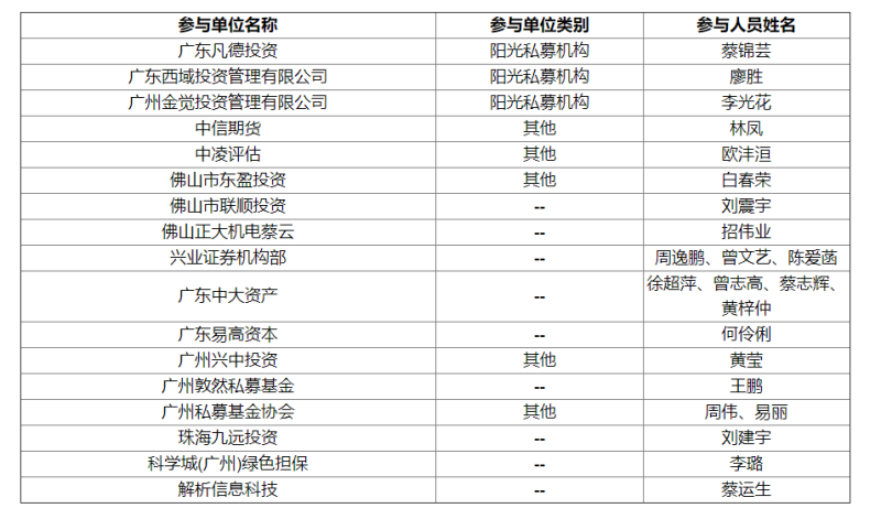 調(diào)研參與機構(gòu)詳情如下: